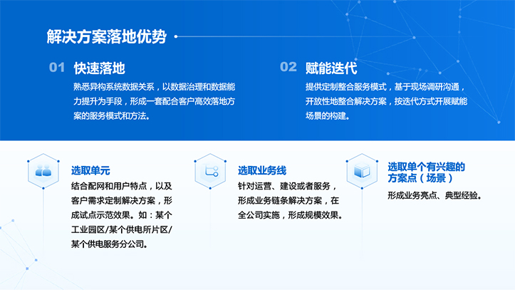 赋能迭代 提供定制整合服务模式,,,,基于现场调研沟通开放性地整合解决方案,,,按迭代方式开展赋能场景的构建。。。。