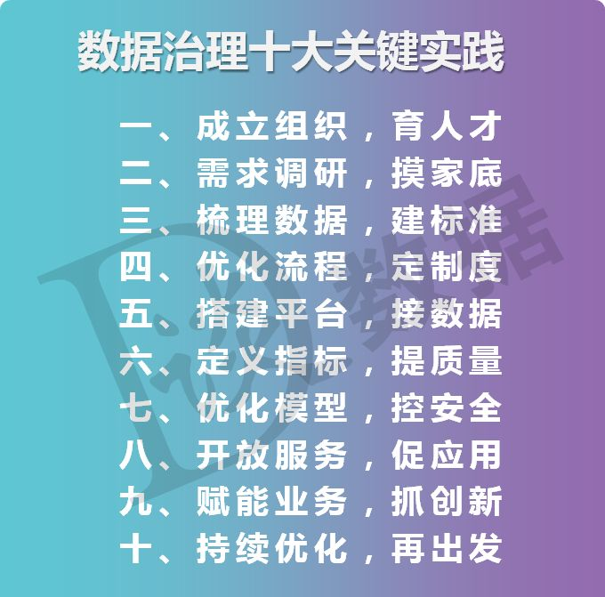 数据到底怎么治,,,,这确实是一个宽泛的话题,,,首先是要明确治理的内容。。。。针对不同的治理内容采取不同的数据治理策略。。关于小数据和大数据的治理侧重点上文已经说明。。。。以下为笔者在数据治理领域总结的数据治理十大关键实践: