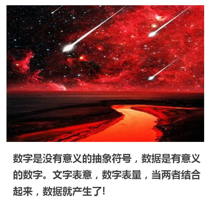 数据是指对客观事件进行记录并可以鉴别的符号,,,是对客观事物的性质、、、状态以及相互关系等进行记载的物理符号或这些物理符号的组合。。。。其实在我看来,,,数据可以分为两个部分,,,一是数字,,二是文字。。。数字是没有意义的抽象符号,,数据是有意义的数字。。。文字表意,,,,数字表量,,,当两者结合起来,,,数据就产生了。。