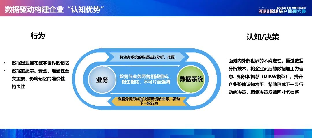 从企业层面来看,,,,数据是企业知行合一的核心要素。。一方面数据是业务在数字世界的记忆,,,它的质量、、、安全、、、连通性对业务本身至关重要。。。。另一方面企业通过数据分析技术,,,,将业务沉淀的数据加工成为信息、、、、知识甚至是智慧,,以辅助提升企业的决策能力,,,,驱动下一轮的经营行为。。。经过多年发展,,,,一些头部机构基本实现了业务在线化,,,积累了大量的数据,,现在最迫切的命题就是如何构建数据驱动的能力,,,,让自动化的决策能力和数据驱动的文化深入到企业的每个角落,,,,以形成企业新的竞争优势。。。