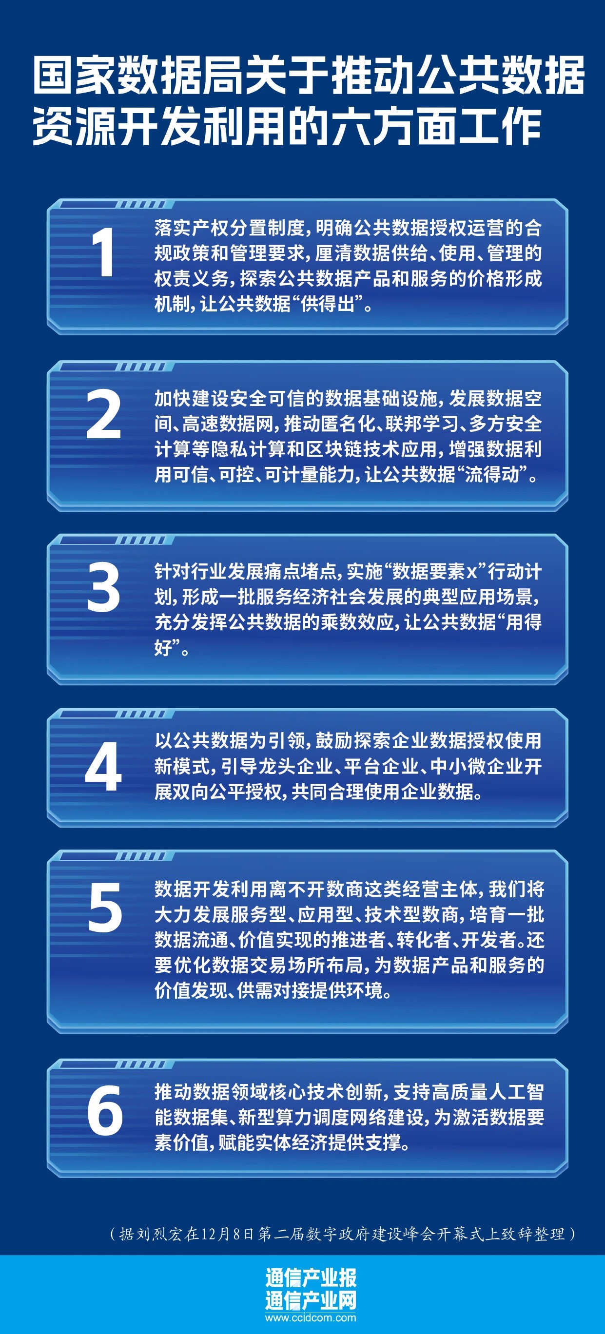 对此,,,刘烈宏表示,,,国家数据局将大力推动公共数据资源开发利用,,加快数据市场化配置改革,,,将重点做好以下几方面工作: