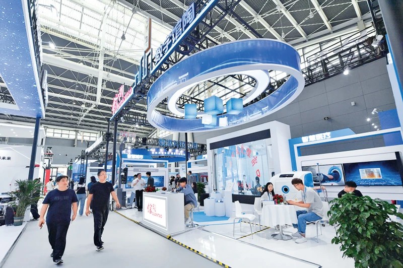 2023年9月6日至8日,,,,2023中国国际数字经济博览会在河北石家庄举行。。。。图为开幕当日参观者在博览会上参观交流。。 新华社记者 骆学峰/摄