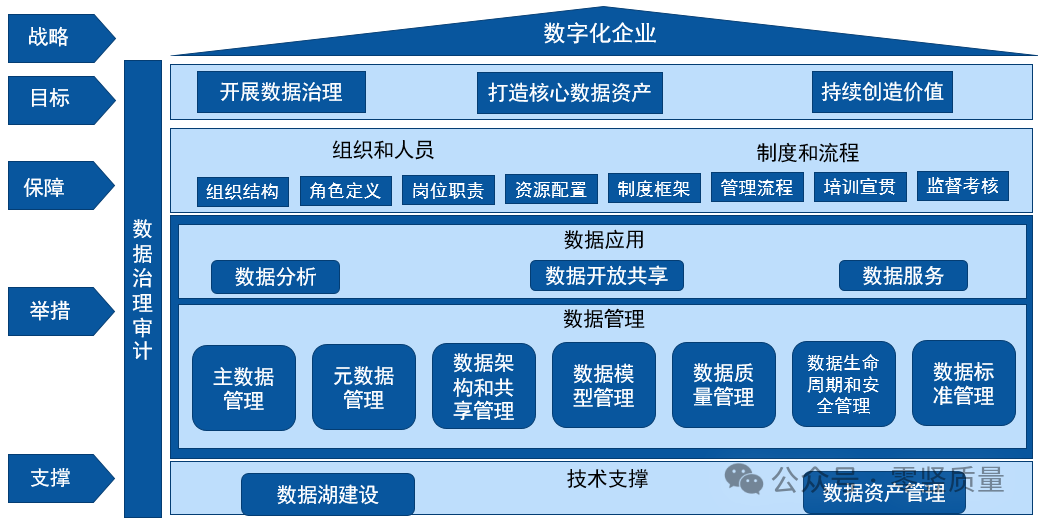 数据治理是一项复杂而长期的任务,,,它涉及多个领域和方面,,,需要企业全体员工的共同努力和持续投入。。在数据治理的六大关键领域中,,规范、、、组织、、、、流程、、技术、、质量管理和文化是相辅相成的,,它们共同构成了数据治理的完整体系。。。