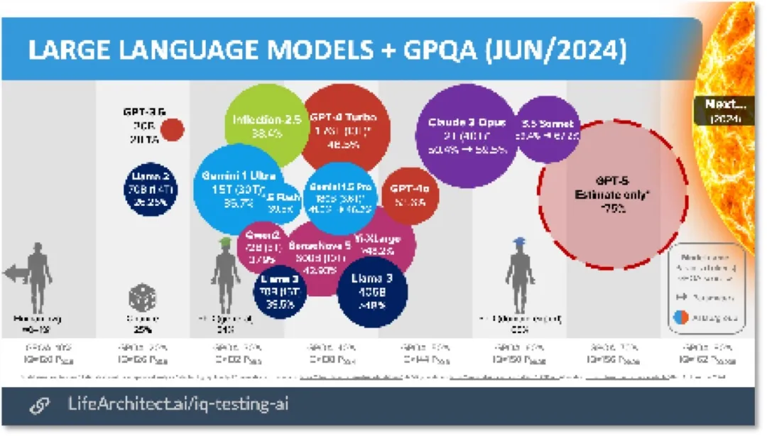 2024年6月20日,,,美国达特茅斯工程学院公布了对OpenAI首席技术官米拉·穆拉蒂(Mira Murati)的采访视频。。。。米拉在采访中透露,,GPT-5将在一年半后发布,,在某些领域将达到博士的智能。。与此同时,,,,Claude 3.5 Sonnet,,已经成为了第一个测试分数高于最聪明的人类博士的模型。。