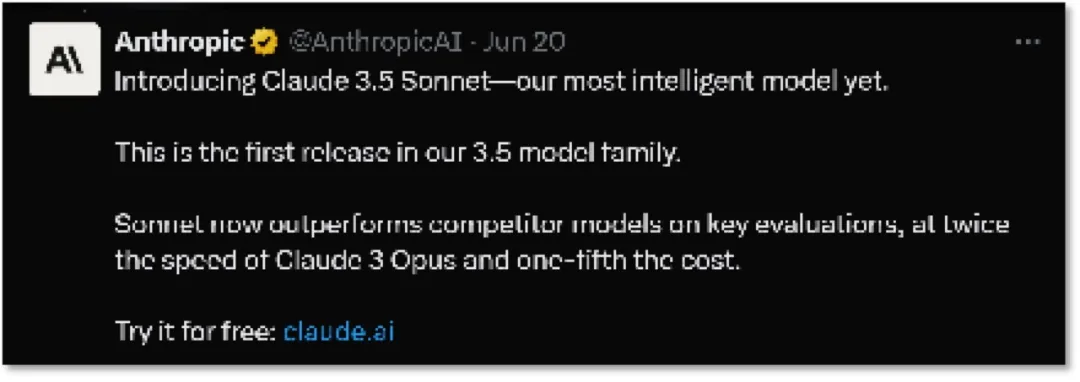 与此同时,,,Anthropic于6月20日官宣发布了全新大模型 Claude 3.5 Sonnet,,,,号称是迄今为止最智能的模型。。。。