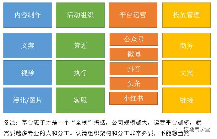 其次,,部门内有职级高低,,要具体区分:谁需要看报表,,他的责任与关注点是什么。。同样是销售,,部门领导关注的是下属队伍的排兵布阵,,,,重点在什么区域,,,,主打什么产品。。。每一个销售人员,,,,关注的是要跟进哪个客人、、、跟进哪一步、、、、见人说什么。。一般来说,,越是管理层就越关注策略问题,,,越是基层就越关注执行问题。。。。即使有些看起来一个人也能办的事,,,在企业里也有分工合作。。比如公众号发文章,,,似乎一个人就能写,,可在企业场景里,,,人家有专业的名字叫:新媒体运营。。。也有细致的工作分工。。