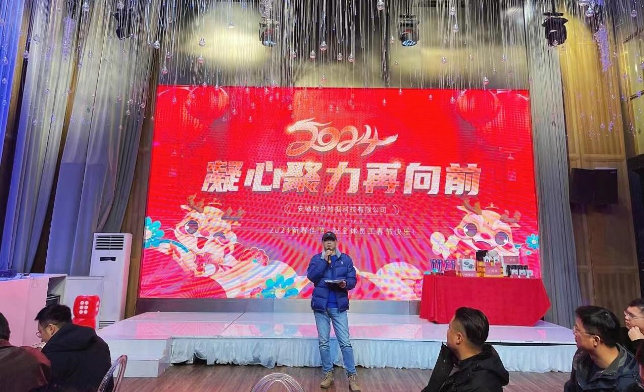 年会正式开始,,公司总经理许剑汇报了过去一年公司的经营发展状况,,总结了成绩也指出了不足,,,,同时对2024年公司的经营发展提出了全新的目标,,,,尊龙时凯数据将以新的产品体系、、、新的市场化推广手段,,全力拓展新的市场空间。。。